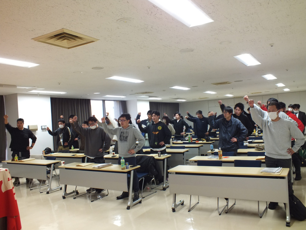 最後に、団結ガンバローを山本副委員長が行い、閉会した。